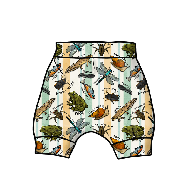 These Pond Dipping Bummies are perfect for both playtime and relaxation, featuring a cozy jersey waistband! They're ideal for wearing over a nappy (including cloth ones) during warm weather or for lounging around the house. Made from super comfy Cotton Lycra (95% cotton 5% elastane), these Bummies are Oeko-Tex certified and printed using vegan-friendly dyes.