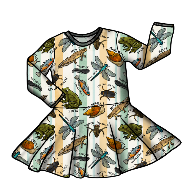 Twirl into style in our long sleeved Pond Dipping twirly dress!